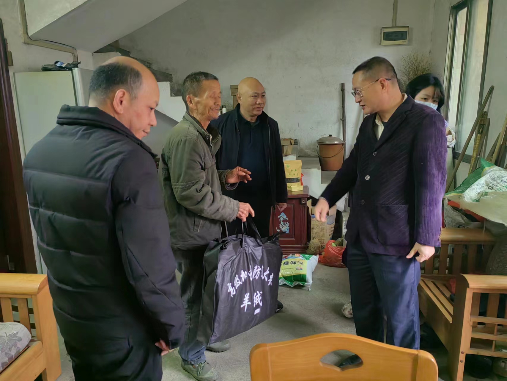 入户走访中,黄剑武副县长一行与困难群众亲切交谈,详细了解困难群众的身体情况和住房安全、用电、用气、饮食、防寒物资准备等情况,嘱咐群众多保重身体,适时添衣添被,提醒大家要注意用火、用电安全,并为他们送上御寒保暖物资和油米生活物资,让群众既暖身又暖心。