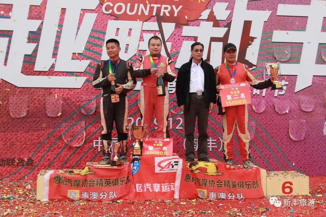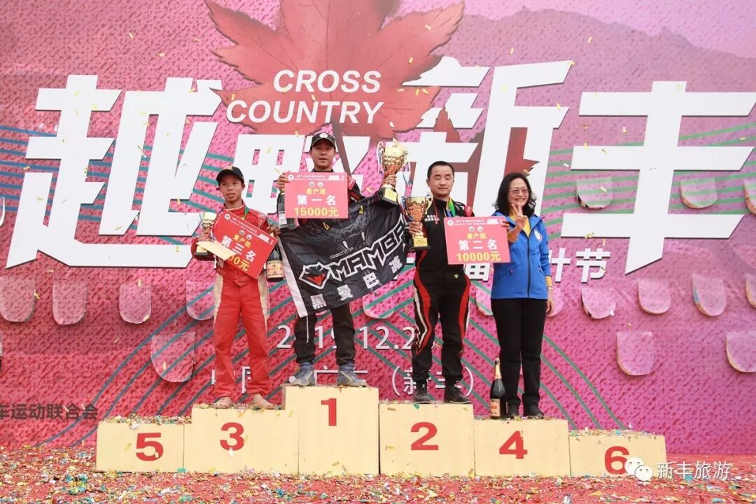 经过激烈角逐,新丰越野俱乐部谭国强获得街车组冠军,慧睿思通车队洪育龙获得UTV组冠军,新丰县汽车摩托车运动协会获得董旭女子组冠军,黑曼巴减震赛车队江达富获得量产组冠军,东莞霸哥减震车队陈文获得公开组冠军,唐影集团有为车队梁权获得专业组冠军。