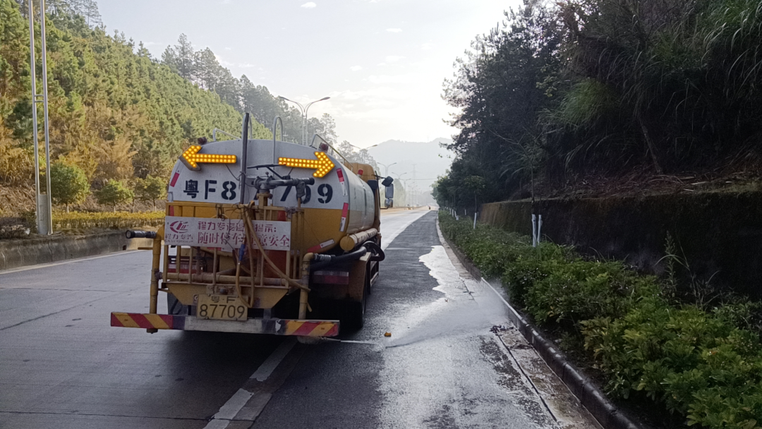 在道路清洁方面,中心采用了“机械+人工”方式对路面进行深度清洁,采用洗地机、扫地车等清洁设备,对路面进行巡查和清洁,确保路面清洁无死角;同时,对路面上的顽固污渍和积存垃圾进行清理,提升路面清洁度。在路肩整理方面,清理公路两侧各类垃圾和废弃物,对主干道两侧的白色垃圾、生活垃圾等进行集中清除;对公路两侧的杂草进行清除,修剪防碍行车树枝,清理枯枝黄叶,确保沿线绿植美观洁净。