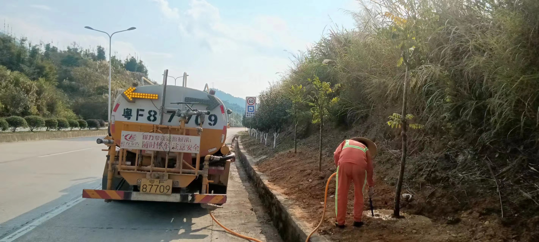 为进一步提升管养路段公路沿线绿化水平,中心对新丰西至国道G105线龙江段进行绿化新种工作,种植麻楝共计684棵,有效提升公路的景观效果和生态功能。同时,增派养护人员,定期对沿线绿化进行巡查,及时发现问题并处理,确保绿化带的整齐美观;强化公路绿化管护,一旦发现绿化带内有树木死亡或生长不良的情况,及时更换补植,不留空白,确保绿化带的连续性和美观性。