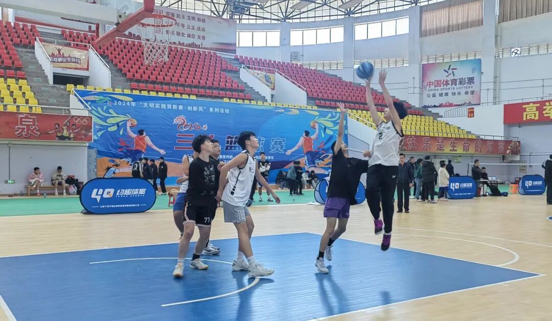 2月12日(年初三),在县体育馆内进行“文明实践贺新春·树新风”系列活动-三人篮球比赛,21支队伍进行激烈角逐。