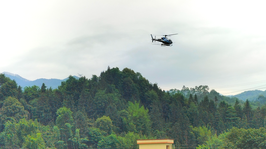 记者在现场看到飞防工作人员有条不紊地配药,对药箱加装药剂,随着一声轰鸣,满载药剂的直升机腾空而起,一个来回大约20分钟,各项工作都在紧张有序进行。