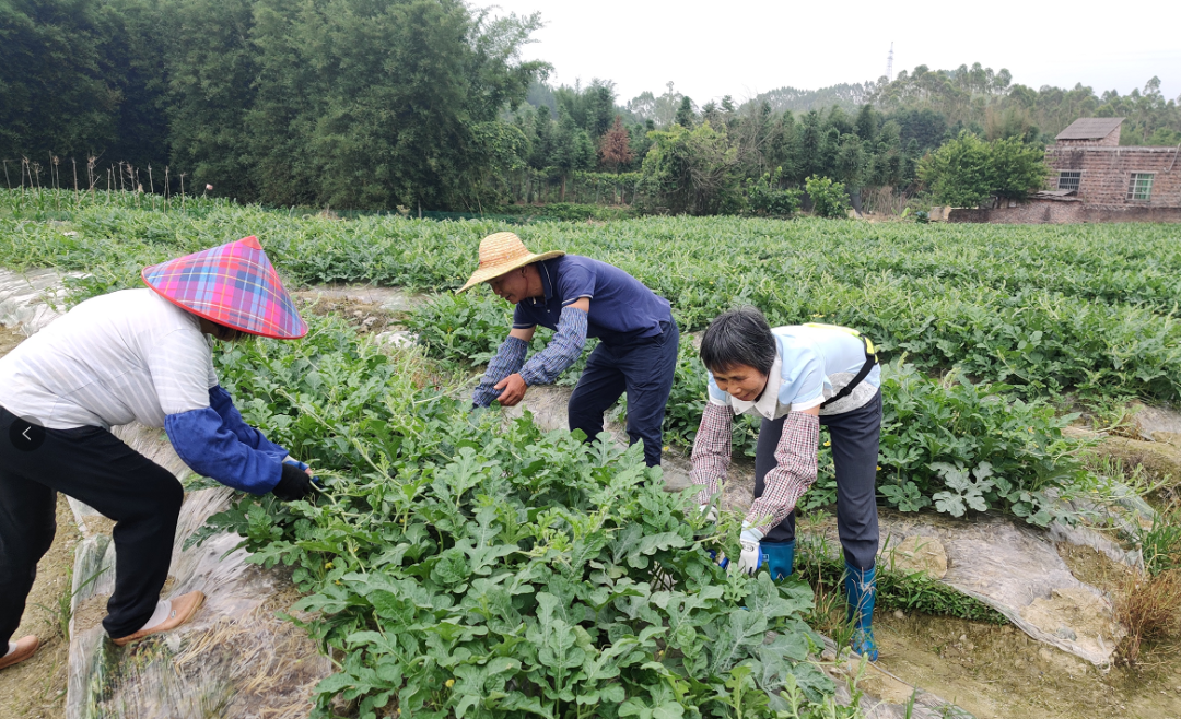 当前正是各种农作物蓬勃生长的季节,也是农作物田间管理的关键时期。在遥田镇长安村一片绿悠悠的西瓜田中,数位村民正忙碌着除草、整理瓜苗,其中有一个怀有身孕10个月却仍和村民一起劳作的青年妇女,她叫李启杏。