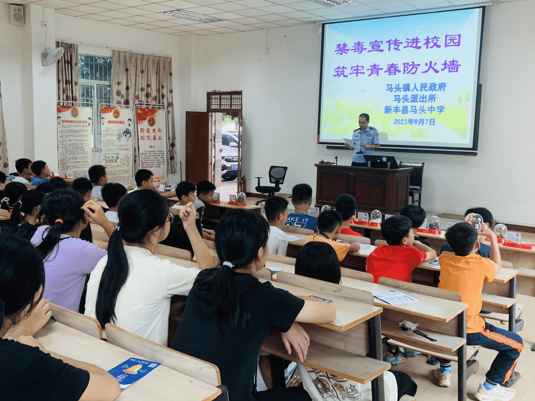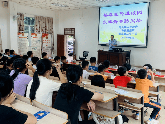 为进一步增强学生识毒、防毒、拒毒意识和能力,筑牢校园禁毒防线。9月7日上午,马头镇政府联合派出所,到马头中学开展“禁毒宣传进校园 筑牢青春防火墙”宣传活动。