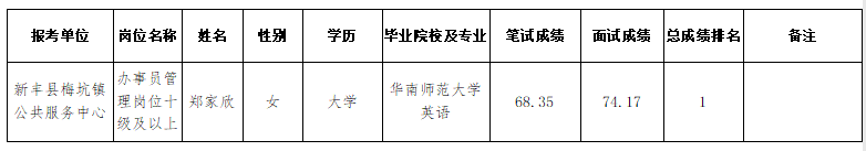 2023年新丰县梅坑镇事业单位公开招聘工作人员拟聘用人员公示