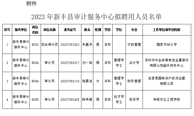 2023年新丰县审计服务中心拟聘用人员公示