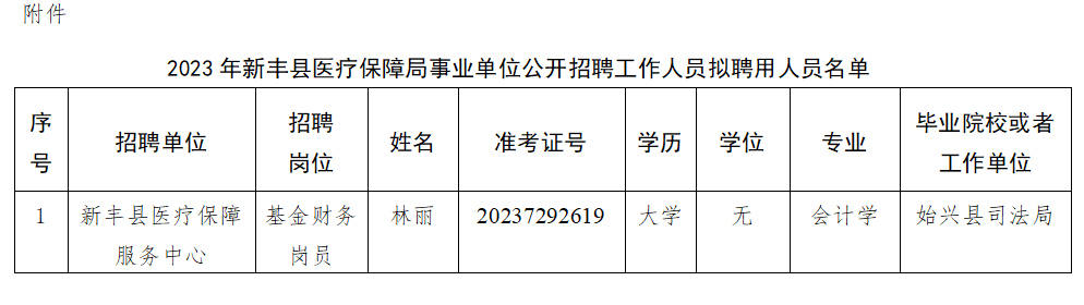 附件:2023年新丰县医疗保障局事业单位公开招聘工作人员拟聘用人员名单