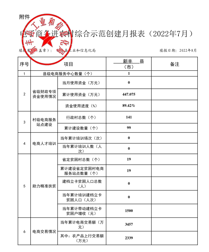 韶关市电子商务进农村综合示范工作报表(7月)