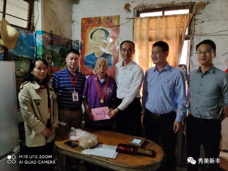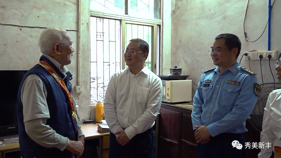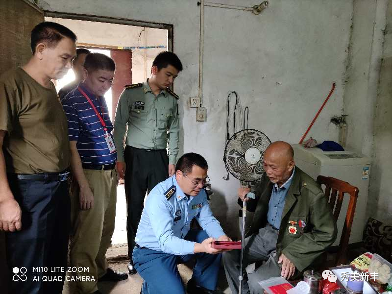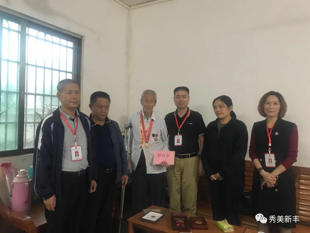 在潘华产家中,区毅明为老人佩戴纪念章,送上慰问金,与老人亲切交谈,认真聆听老人讲述抗美援朝期间的峥嵘岁月,详细了解老人的生活情况和身体状况。区毅明对潘华产为保家卫国参加抗美援朝所作的贡献表示感谢,并祝愿老人安享晚年,叮嘱老人保重身体,有困难要及时找相关部门反映。